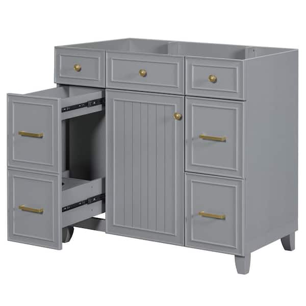 35.4 in. W x 16.65 in. D x 33.3 in. H Bath Vanity Cabinet without Top with 3-Drawers and Adjustable Shelf in Gray