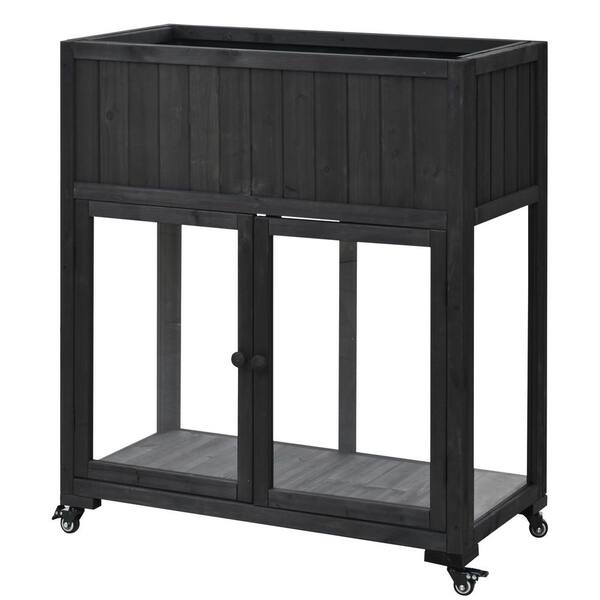 35.4 in. W x 17.7 in. D x 37.4 in. H Mini Wood Cold Frame Greenhouse with Wheels, Black