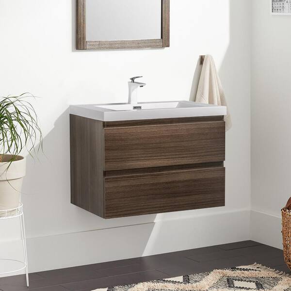 35.4 in. W x 19.7 in. D x 22.5 in. H Bath Vanity in Grey Oak with White Faux Marble Top