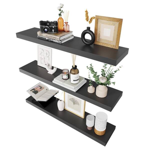 35.4 in. W x 9.3 in. D Black Decorative Wall Shelf, Floating Shelves for Wall, Set of 3