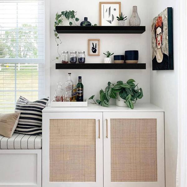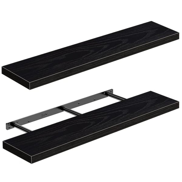 35.4 in. W x 9.3 in. D Black Wood Bathroom Shelves Long Floating Shelf for Wall, Decorative Wall Shelf (Set of 2)