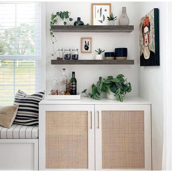 35.4 in. W x 9.3 in. D Gray Wood Bathroom Shelves Long Floating Shelf for Wall, Decorative Wall Shelf (Set of 2)