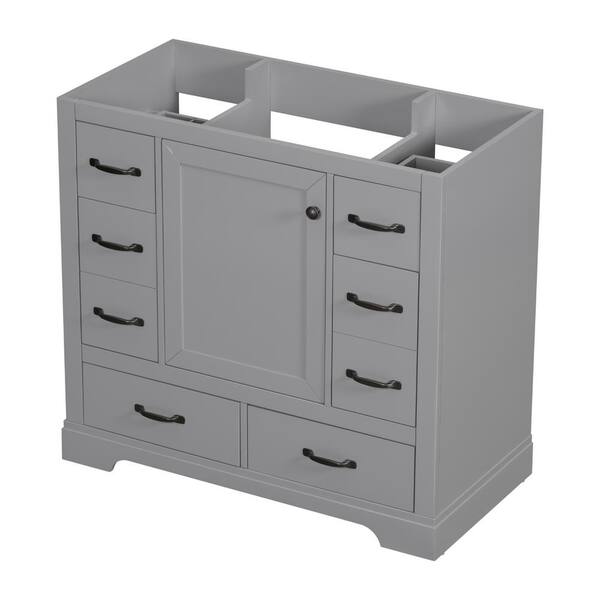 35.5 in. W x 17.9 in. D x 33 in. H Bath Vanity Cabinet without Top in Gray with 6 Drawers and Adjustable Shelf