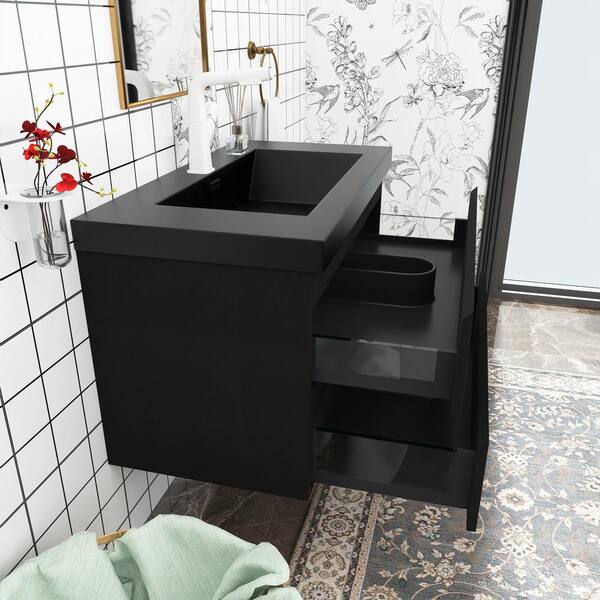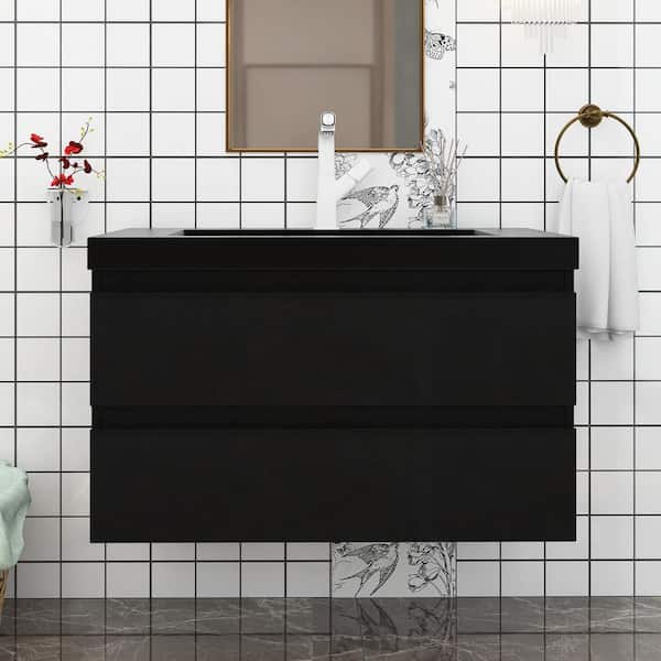 35.5 in. W. x 18.9 in. D x 21.7 in. H Single Sink Wall Mounted Bath Vanity in Matte Black with Black Cultured Marble Top