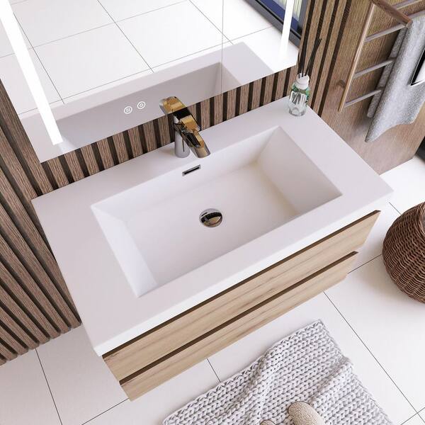 35.5 in. W x 18.9 in. D x 21.7 in. H Single Sink Wall Mounted Bath Vanity in Natural Oak with White Cultured Marble Top