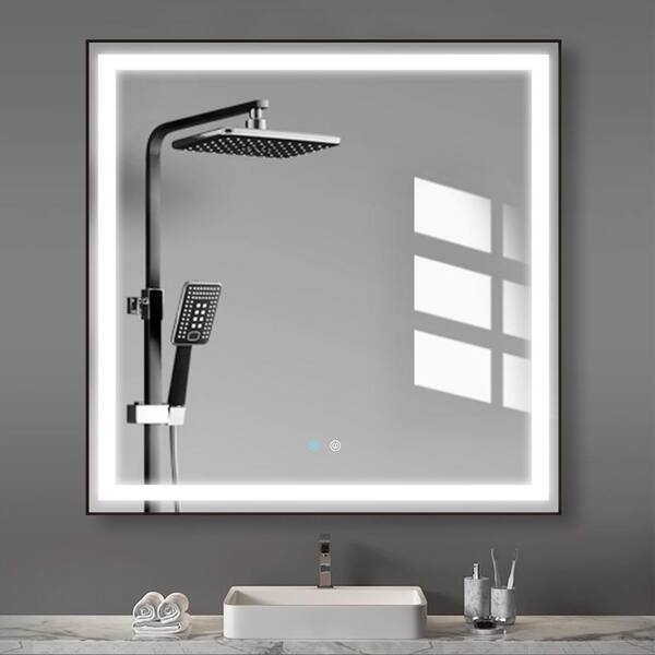 35.5 in. W x 35.5 in. H Square Frameless Anti-Fog LED Dimmable Wall Bathroom Vanity Mirror in Natural Silver