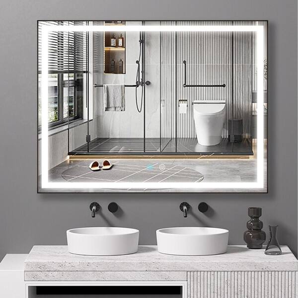 35.5 in. W x 47.5 in. H Rectangular Frameless Anti-Fog LED Dimmable Wall Bathroom Vanity Mirror in Natural Silver