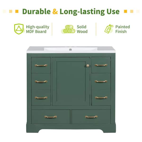 35.6 in. W x 17.9 in. D x 33.4 in. H Bath Vanity Cabinet without Top in Green, Vanity Base with 1-Door and 6 Drawers