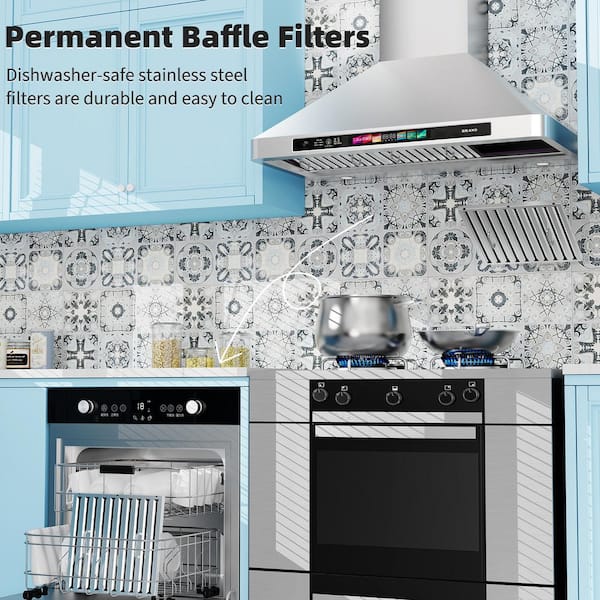 35.7 in. 900 CFM Convertible Wall Mounted 30 in. Range Hood in Stainless Steel with Voice/Gesture/Touch Control
