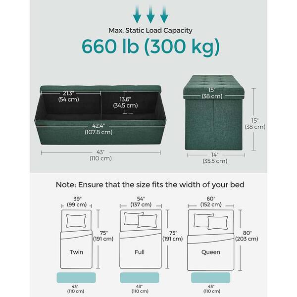 35 Gal. 43 in. Folding Storage Ottoman Bench, Ottoman Foot Rest, End of Bed Bench Outdoor Storage Bench