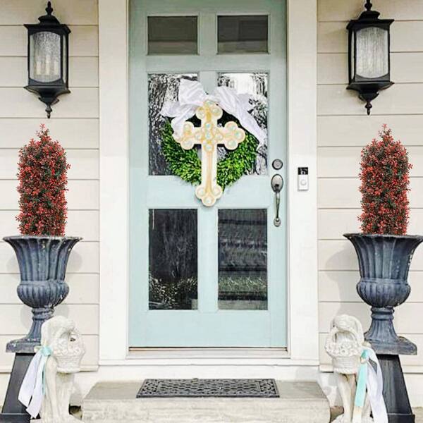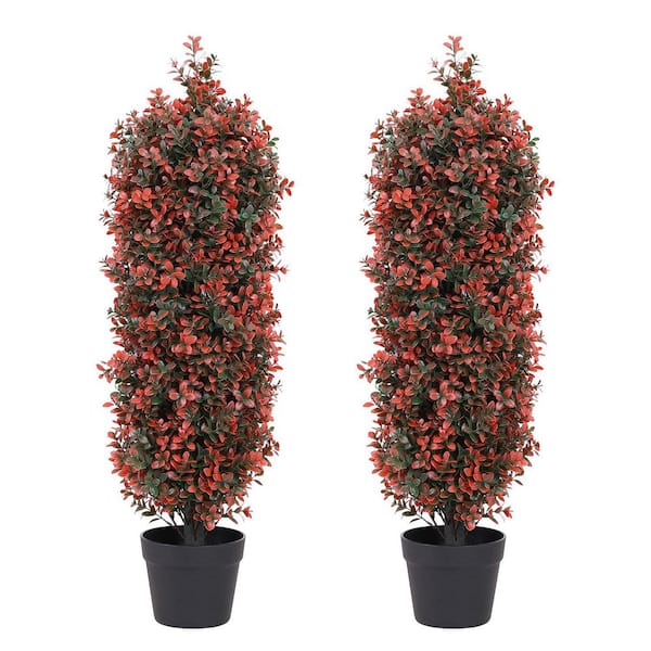 35 in. Artificial Topiary Cedar Tree, Fake Plants UV Resistant Faux Red Bushes (Set of 2)