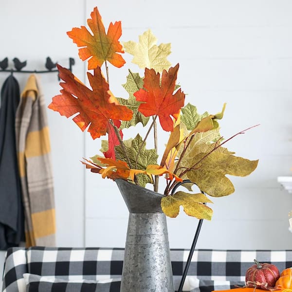 35 in. Green Artificial Velvet Maple Leaf Branch Decor for Harvest Fall Festival Thanksgiving Table Decoration, Set of 6