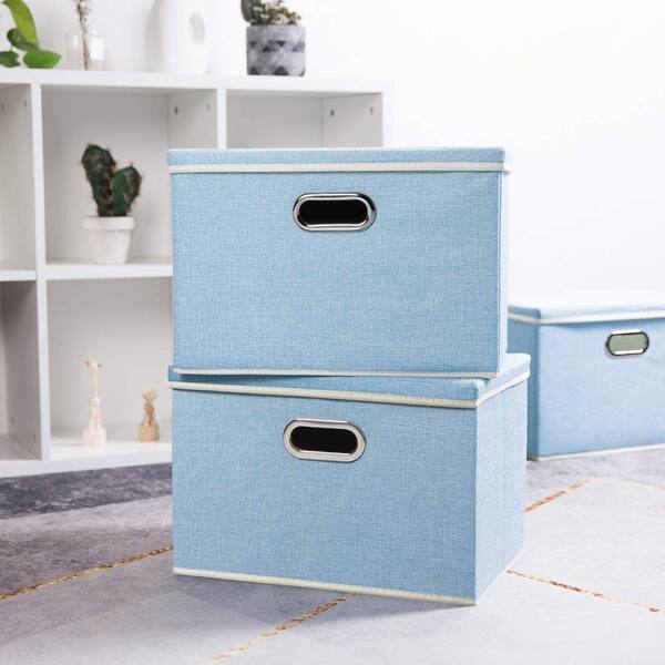 35 qt. Fabric Collapsible Storage Bin with Lid in Blue (3-Pack)
