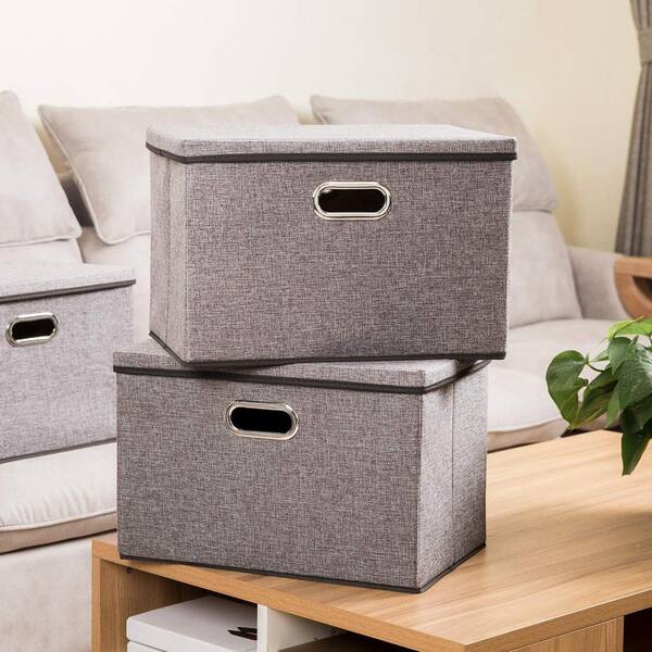 35 qt. Fabric Collapsible Storage Bin with Lid in Gray (3-Pack)