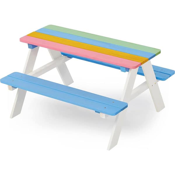35in. Rectangle Wood Kids Picnic Table Seats 4 People for Outdoor,Table&Chair Set,Kids Activity Sensory Table in Rainbow