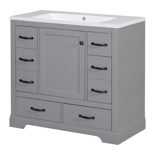 36.00 in. W x 18.00 in. D x 34.20 in. H One Sinks Bath Vanity in Gray with White Ceramic Top