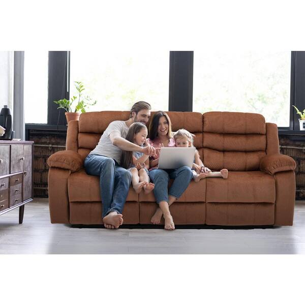 36.2 in wide Brown Polyester 3-Seats Straight recliner chair Sofa with Square Arms