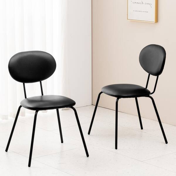 36.22 in. Black Rectangular Faux Leather Counter Height Bar Stools with Metal Legs (Set of 2)