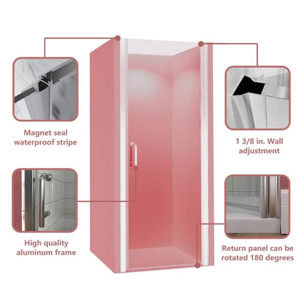 36-37.38 in. W x 72 in. H Fold Pivot Frameless Shower Panel Swing Corner Shower Door in Chrome with Clear Glass