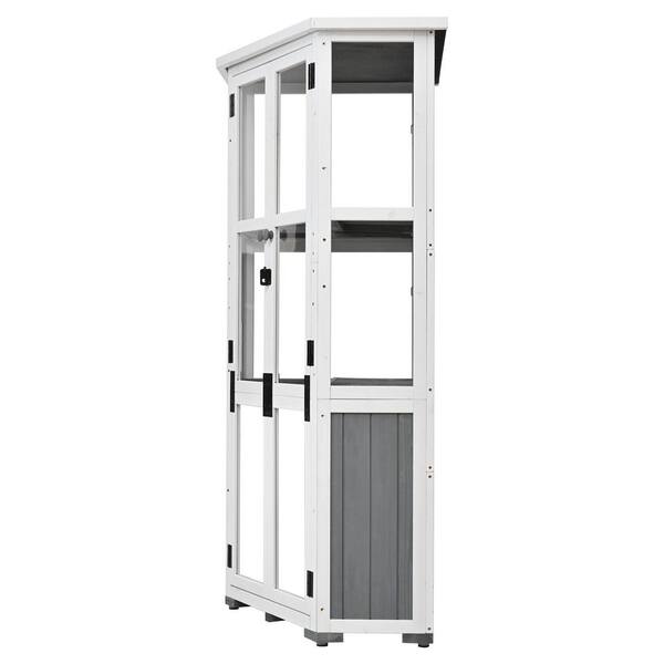 36.6 in. W x 63 in. H Wood Storage Cabinet Outdoor Tool Storage Shed Mini Greenhouse with Waterproof Roof, Storage Shelf