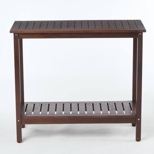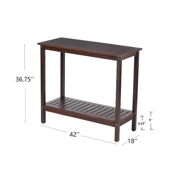 36.75 in. H Brown Rectangle Acacia Wood Outdoor Side Table for Patio, Garden