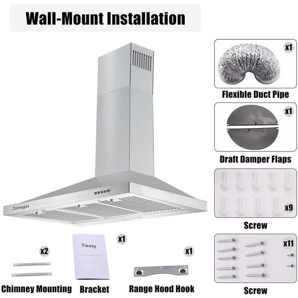36 in. 450 CFM Ducted Wall Mount with LED Light Range Hood in Stainless Steel