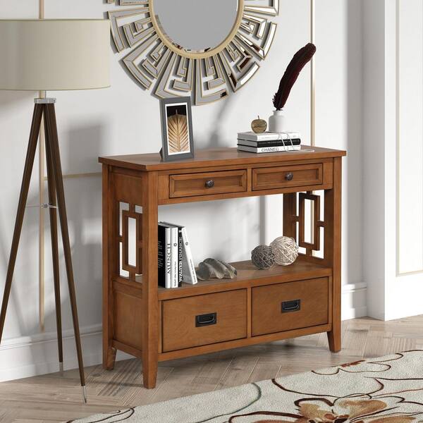 36 in. Brown Rectangle Pine Wood Console Table Sofa Table with 4 Drawers and 1 Storage Shelf