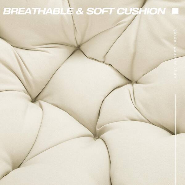 36 in. Brown Wicker Outdoor Lounge Chair Lazy Chair with Beige Cushion and 360° Swivel Base