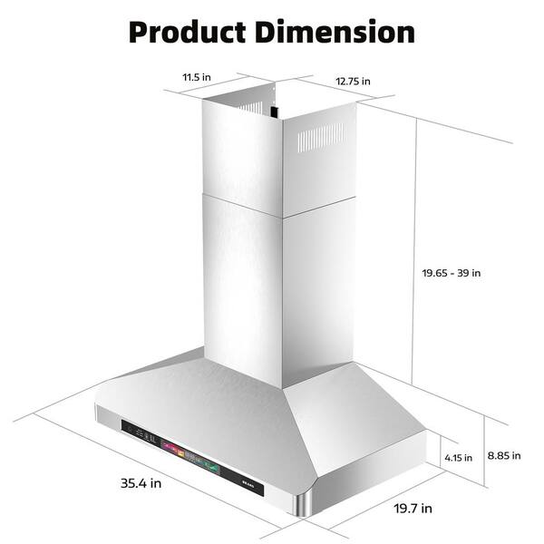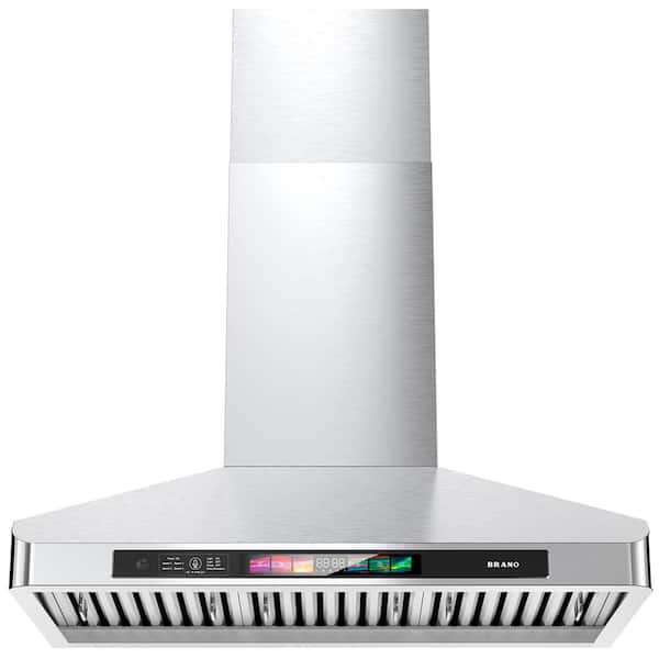 36 in. Convertible Wall Mounted Range Hood in Stainless Steel with 4 Speeds Exhaust Fan, Voice/Gesture/Touch Control