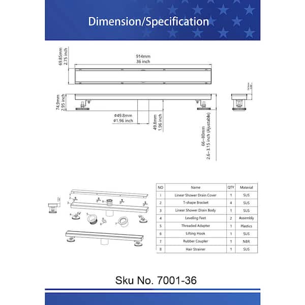 36 in. Linear Grid Shower Drain in Brushed Gold