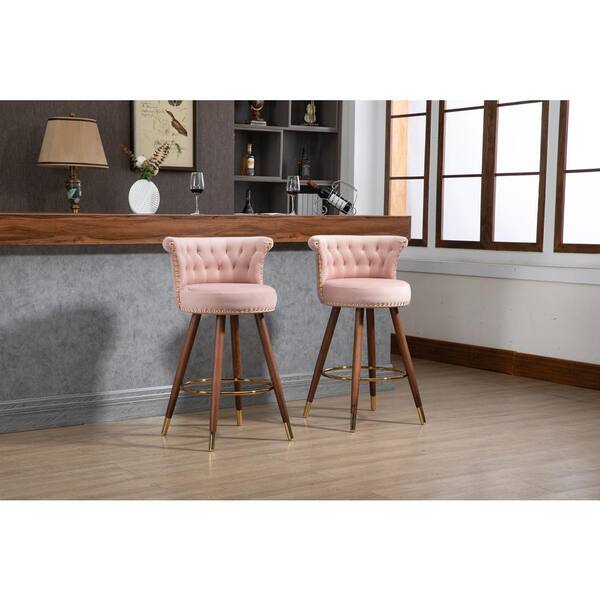 36 in. Low Back Wooden Frame Swivel Upholstered Bar Stool with Pink Velvet Seat (Set of 2)