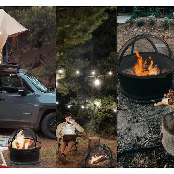 36 in. Round Fire Pit Spark Screen Cover Corrosion-Resistant with Hinge Heavy-Duty for Outdoor