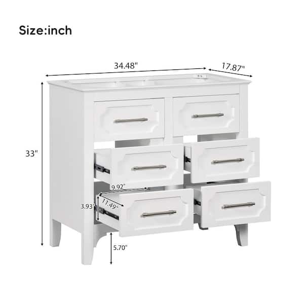 36 in. Solid Wood Framed Freestanding Bath Vanity Cabinet without Top in White with Soft Closing Drawers