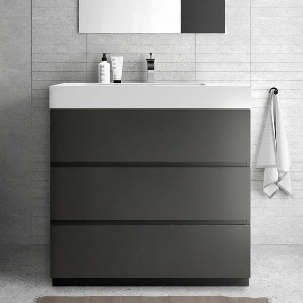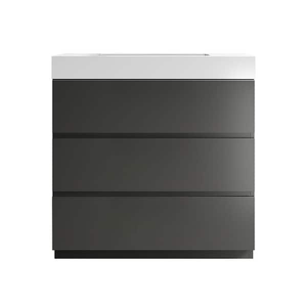 36 in. W x 18.1 in. D x 37 in. H Single Sink Freestanding Bath Vanity in Gray with White Resin Top and 3-Drawer Storage