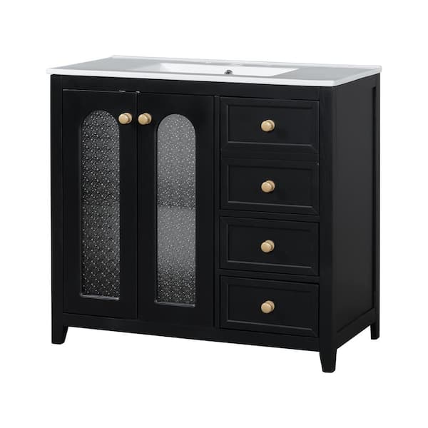 36 in. W x 18.23 in. D x 33.86 in. H Freestanding Bath Vanity with White Ceramic Top in Black, Soft Close Doors
