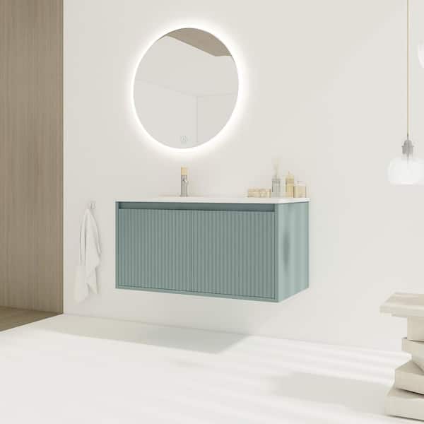36 in. W x 18 in. D x 18 in. H Wall Mounted Bath Vanity in Green with White Cultured Marble Top