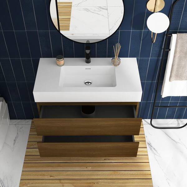 36 in. W x 18 in. D x 25 in. H Single Sink Wall-Mounted Bath Vanity in Dark Oak with White Cultured Marble Top