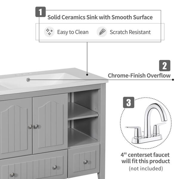 36 in. W x 18 in. D x 32 in. H Single Sink Freestanding Bath Vanity in Grey with White Ceramic Top