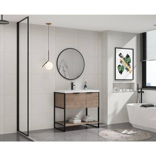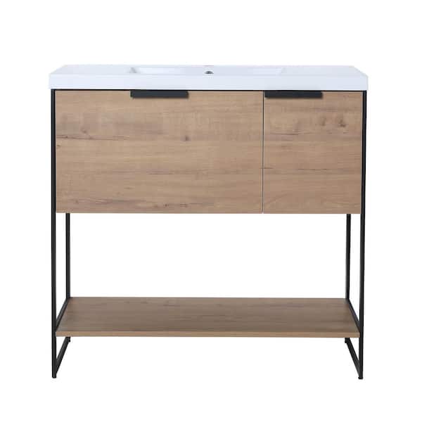 36 in. W x 18 in D. x 33 in. H Bath Vanity in Imitative Oak with Glossy White Top