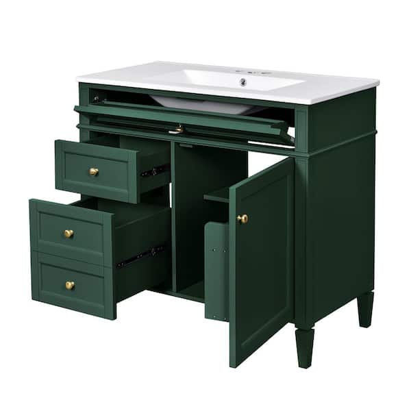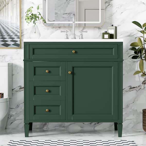 36 in. W x 18 in. D x 33 in. H Freestanding Bath Vanity in Green with White Ceramic Top