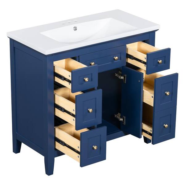36 in. W x 18 in. D x 34 in. H Freestanding Bath Vanity in Blue with White Cultured Marble Top