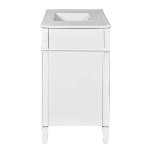 36 in. W x 18 in. D x 34 in. H Freestanding Bath Vanity in White with White Ceramic Top