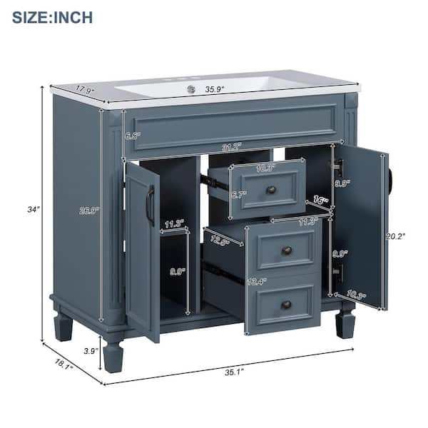 36 in. W x 18 in. D x 34 in. H Single Sink Blue Freestanding Bath Vanity with White Ceramic Top and Mirror Cabinet