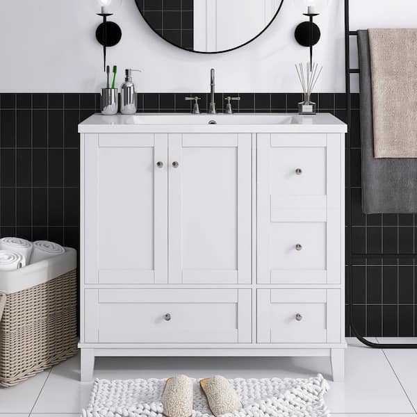 36 in. W x 18 in. D x 34 in. H Single Sink Freestanding Bath Vanity in White with White Cultured Marble Top