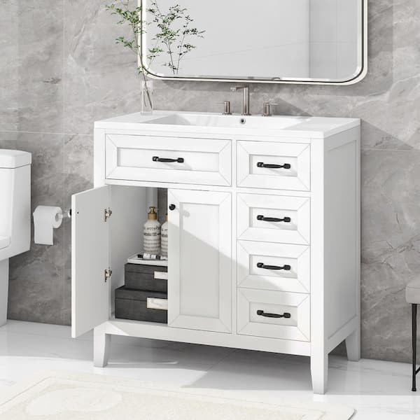 36 in. W x 18 in. D x 36 in. H Single Sinks Bath Vanity in White with White Ceramic Top and 3 Drawers