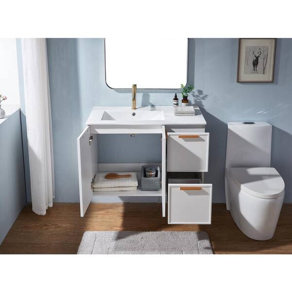 36 in. W x 18 in. D x24 in. H 2 Doors 2 Drawers Floating Bath Vanity in White with White Ceramic Sink