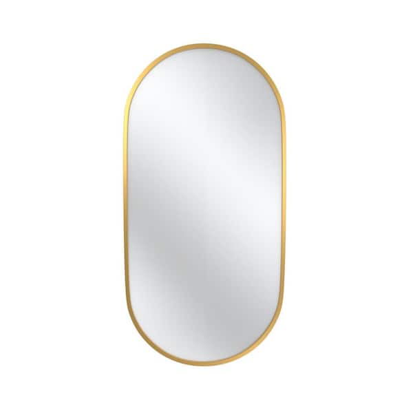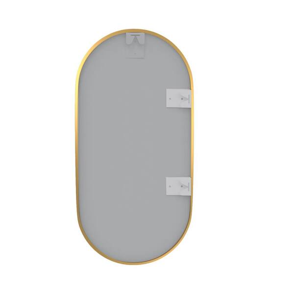 36 in. W x 18 in. H Oval Gold Metal Frame Wall Mounted Mirror with D-Shaped Hooks