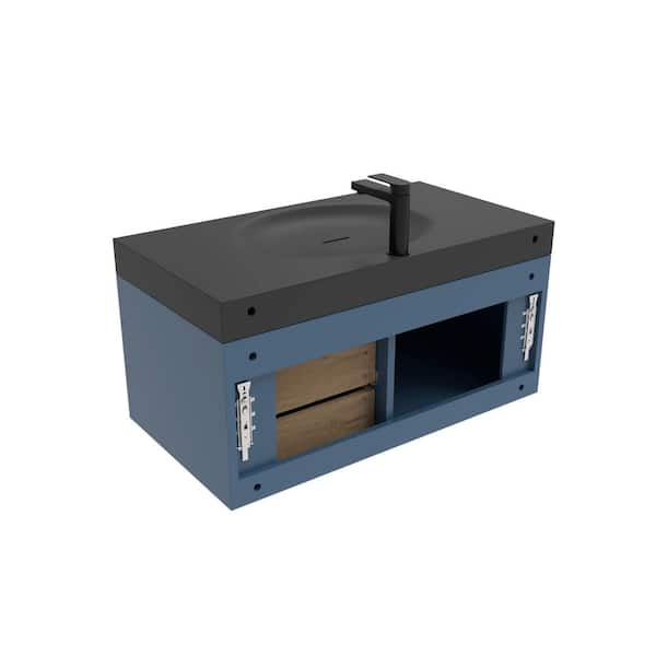 36 in. W x 19 in. D x 16.25 in. H Single Floating Bath Vanity in Matte Blue w/ Black Trim w/ Solid Surface Black Top