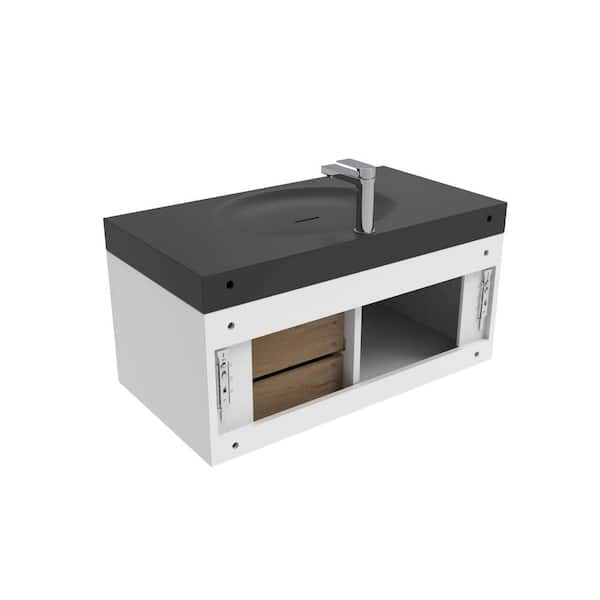 36 in. W x 19 in. D x 16.25 in. H Single Floating Bath Vanity in Matte White w/ Chrome Trim w/ Solid Surface Black Top