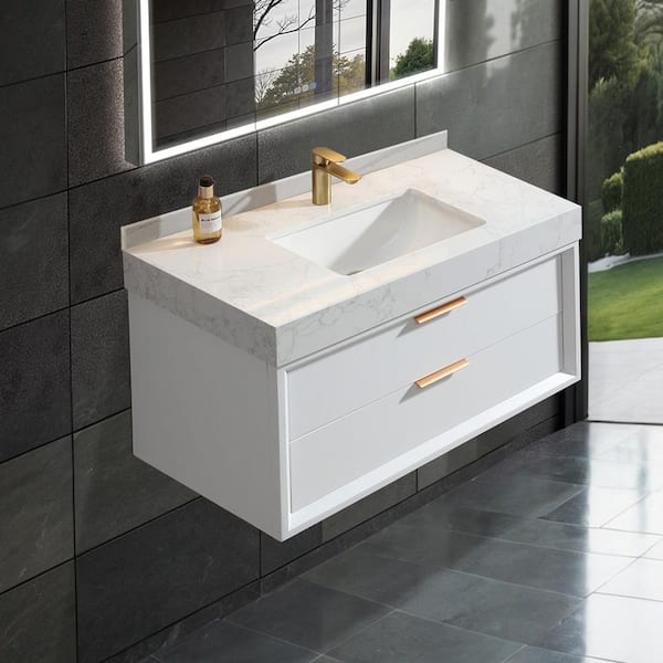 • Floating 36 in. vanity with 2-slow-closing drawers